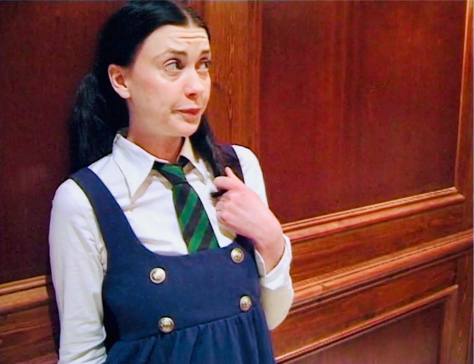 When a student is caught spying through a keyhole at some strange activity going on in a store cupboard she sent instantly to the study whereupon her casual attitude and insolence results in her being given the cane.